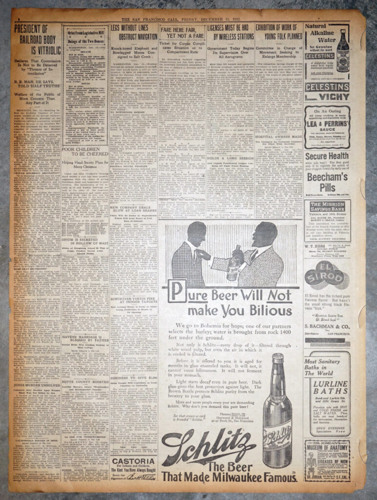 1912 Schlitz “Pure Beer Will Not Make You Bilious” Ad Full Page