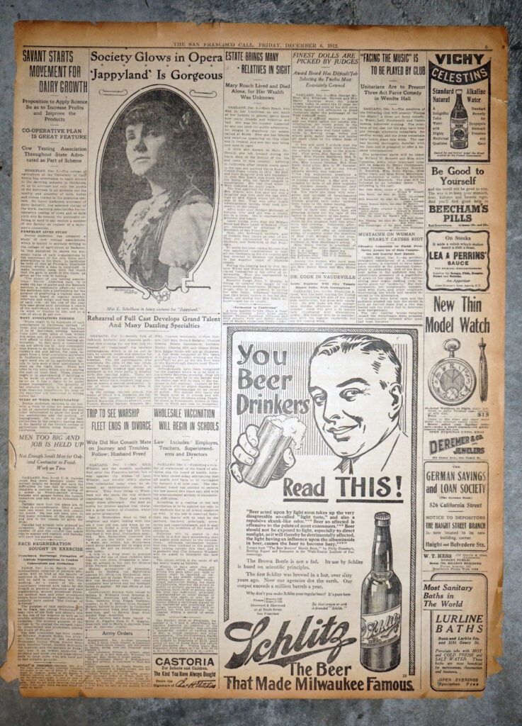 1912 Schlitz “You Beer Drinkers” Ad Full Page