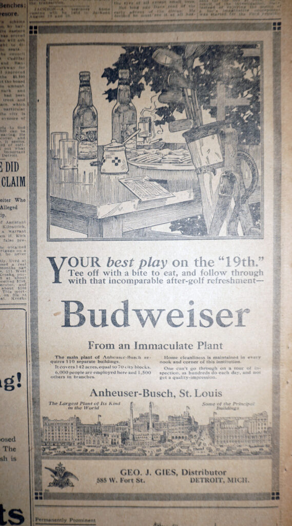 1913 Budweiser “Your Best Play on the “19th” Ad