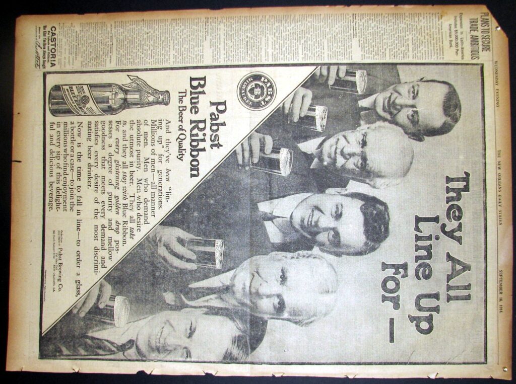 1914 Pabst Blue Ribbon “They All Line Up” Ad Full Page