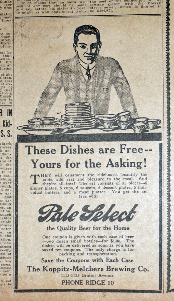 1914 Pale Select “These Dishes Are Free” Ad