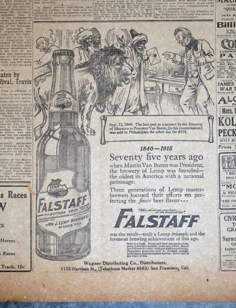 1915 Falstaff “President Martin Van Buren” Ad