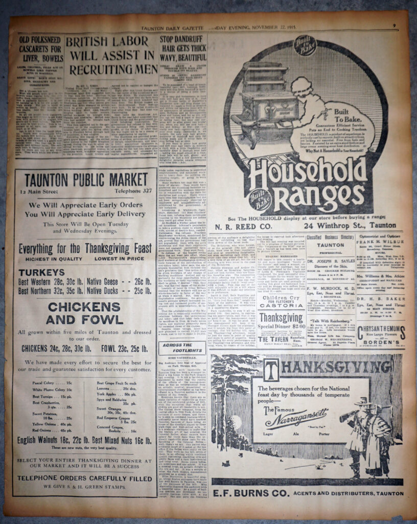 1915 Narragansett “Thanksgiving” Ad Full Page
