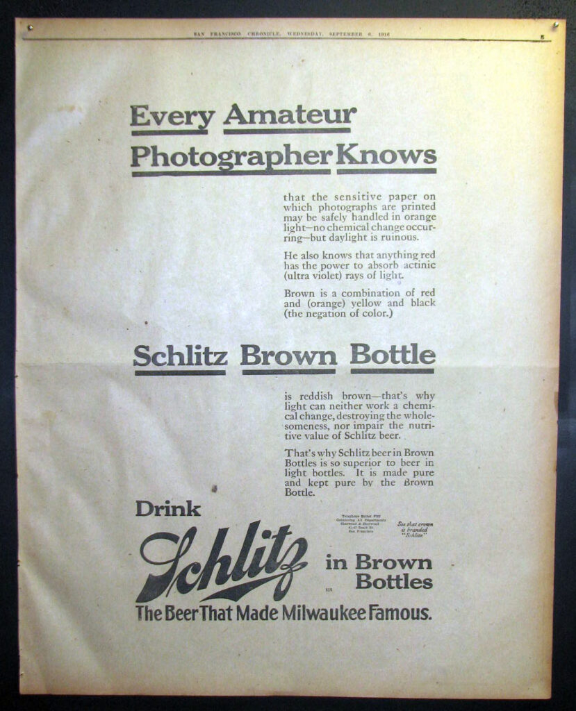 1916 Schlitz “Every Amateur Photographer Knows” Full Page Ad