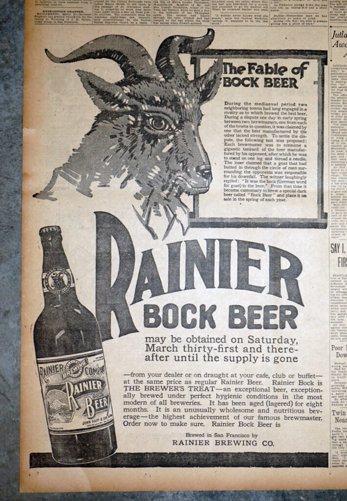 1917 Rainier Bock “The Fable Of Bock Beer” Ad