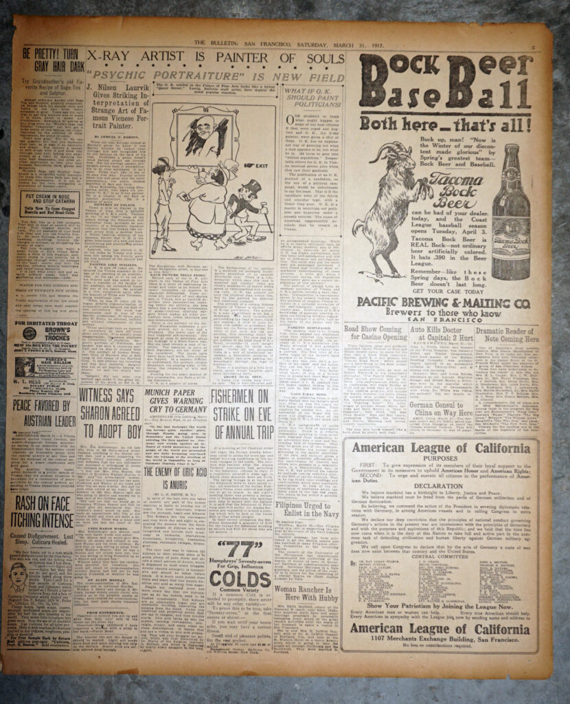 1917 Tacoma Bock “Baseball” Ad Full Page