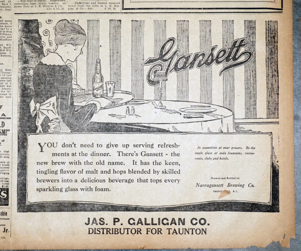 1919 Gansett “Refreshments At The Dinner” Ad