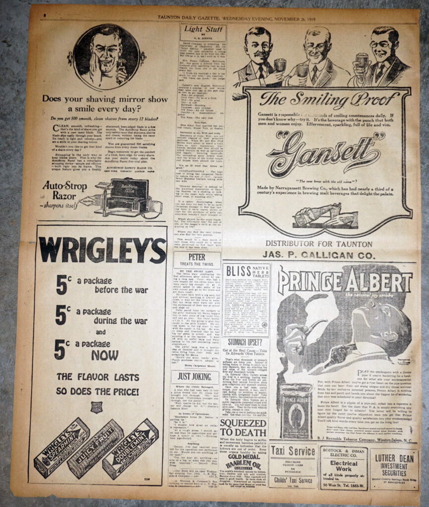 1919 Gansett “The Smiling Proof” Ad Full Page