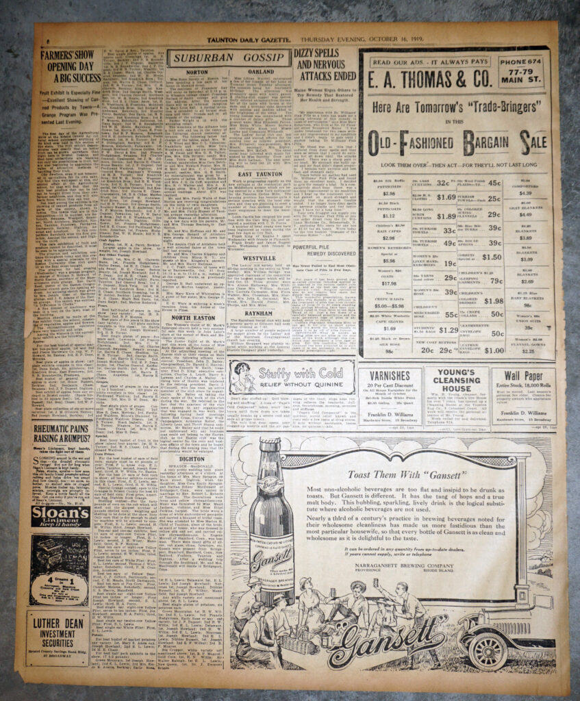 1919 Gansett “Toast Them” Ad Full Page