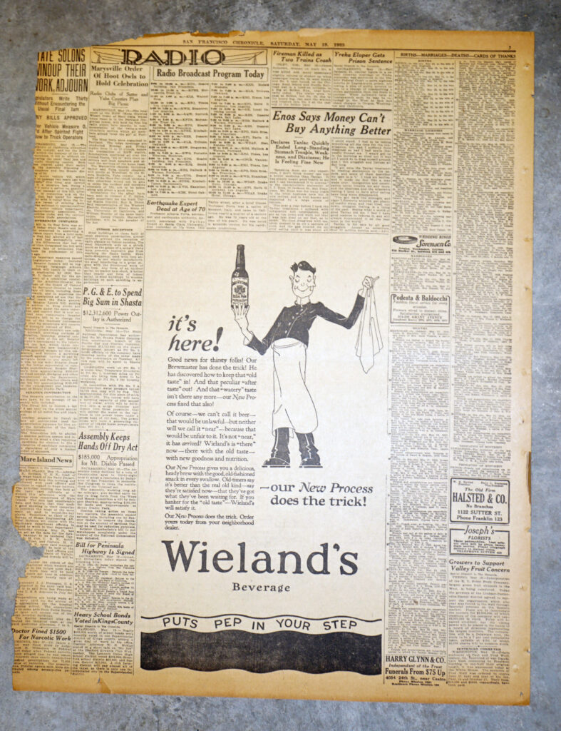 1923 Wieland’s “It’s Here!” Ad Full Page
