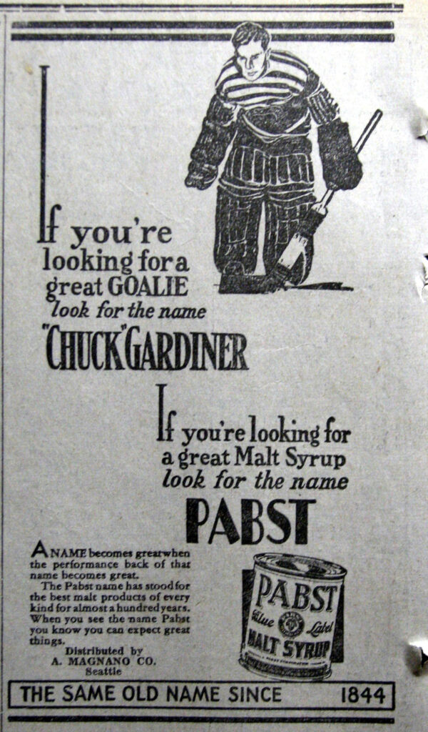1931 Pabst Malt Syrup “Chuck Gardiner” Ad
